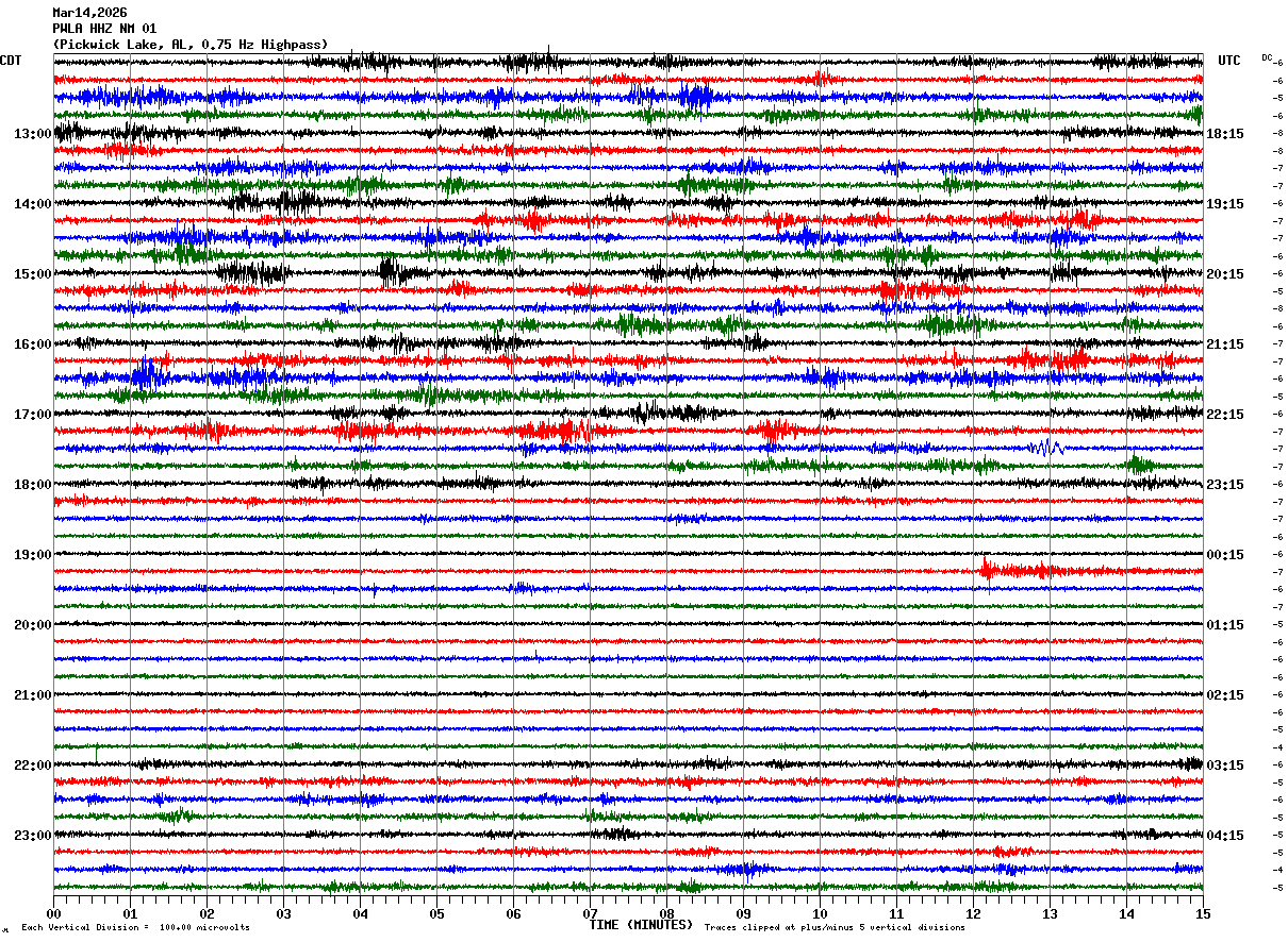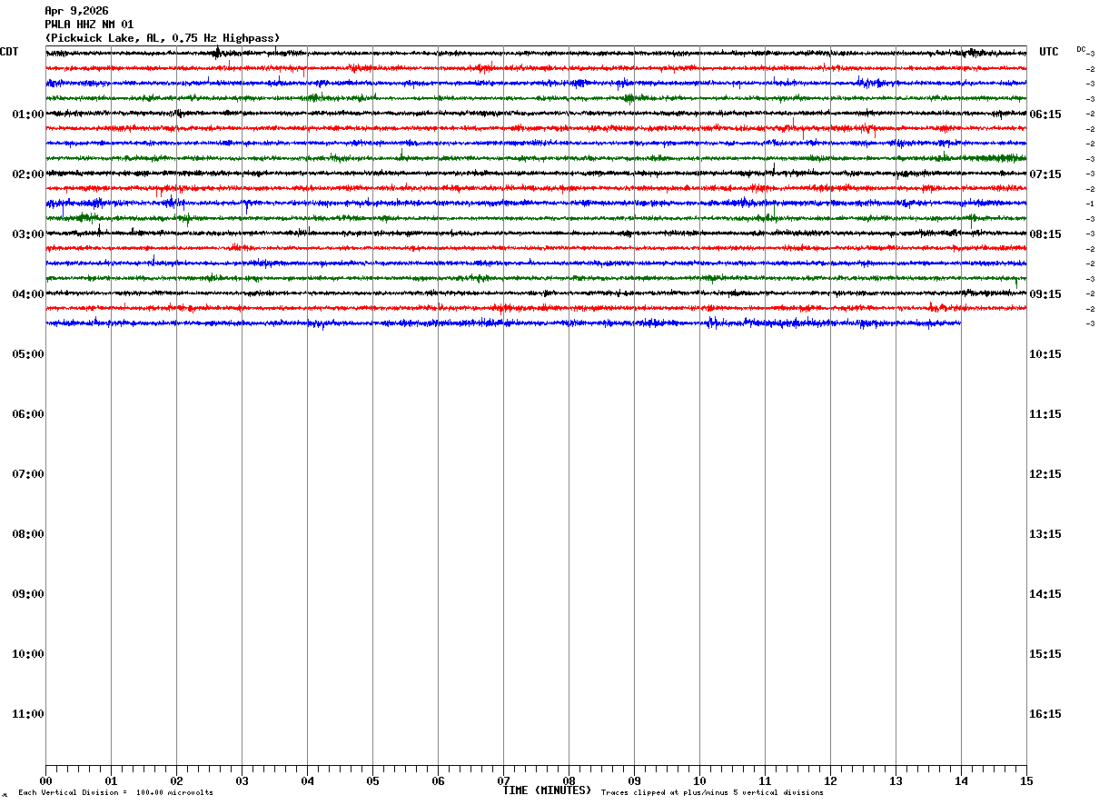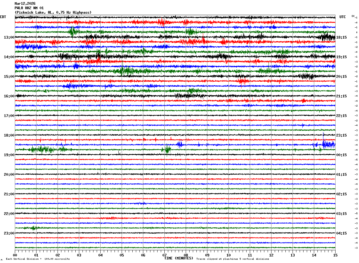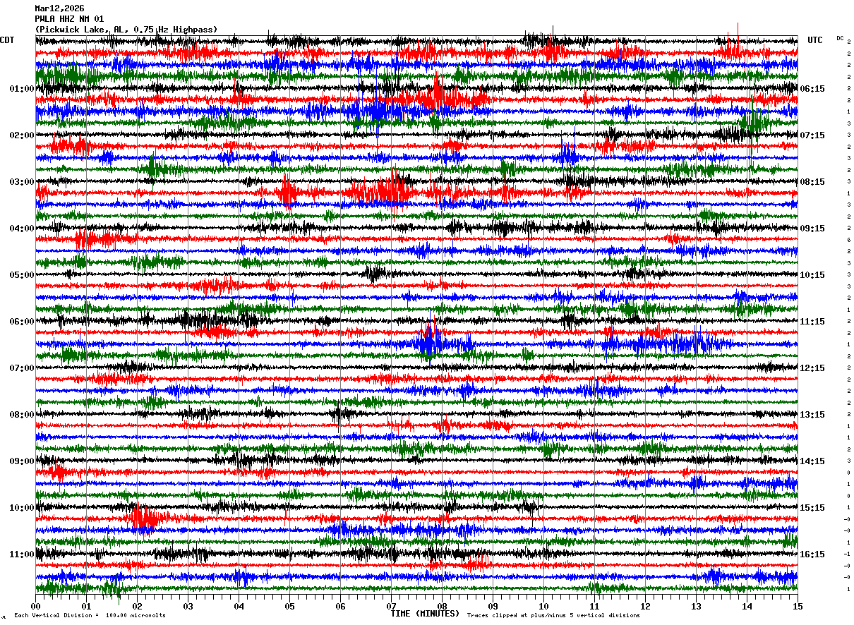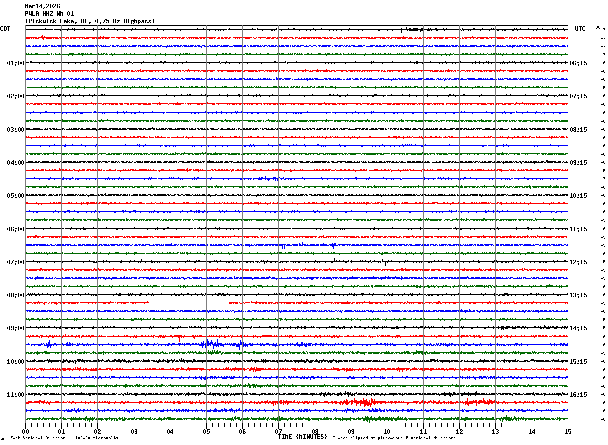 PWLA HHZ NM 01 : Pickwick Lake, AL, 0.75 Hz Highpass