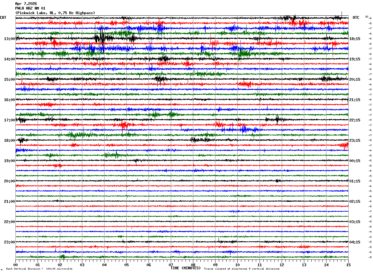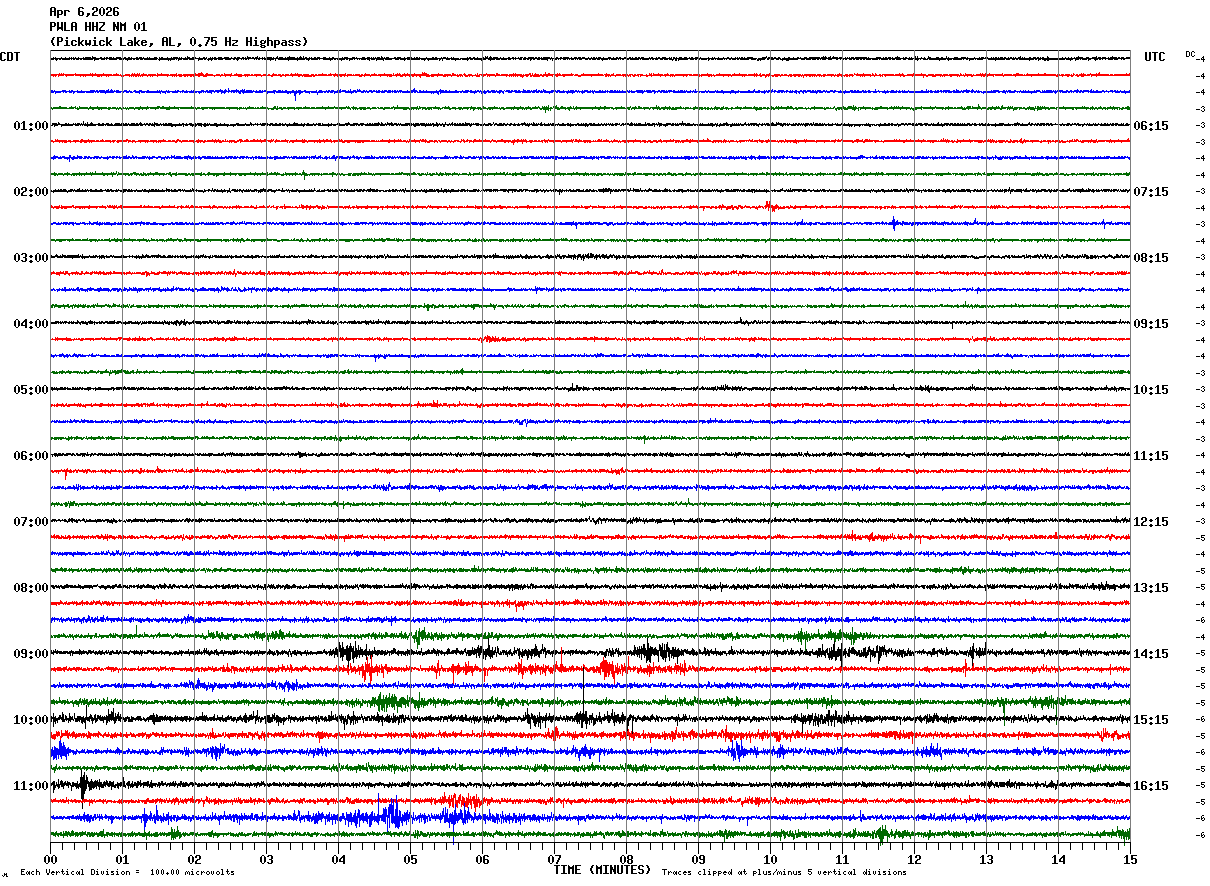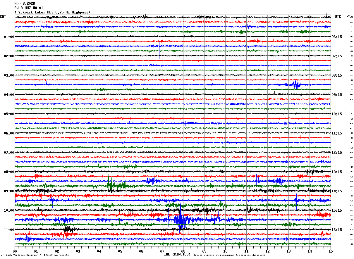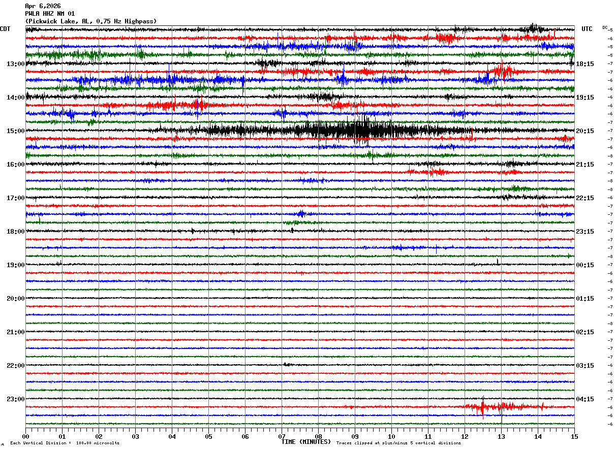 PWLA HHZ NM 01 : Pickwick Lake, AL, 0.75 Hz Highpass