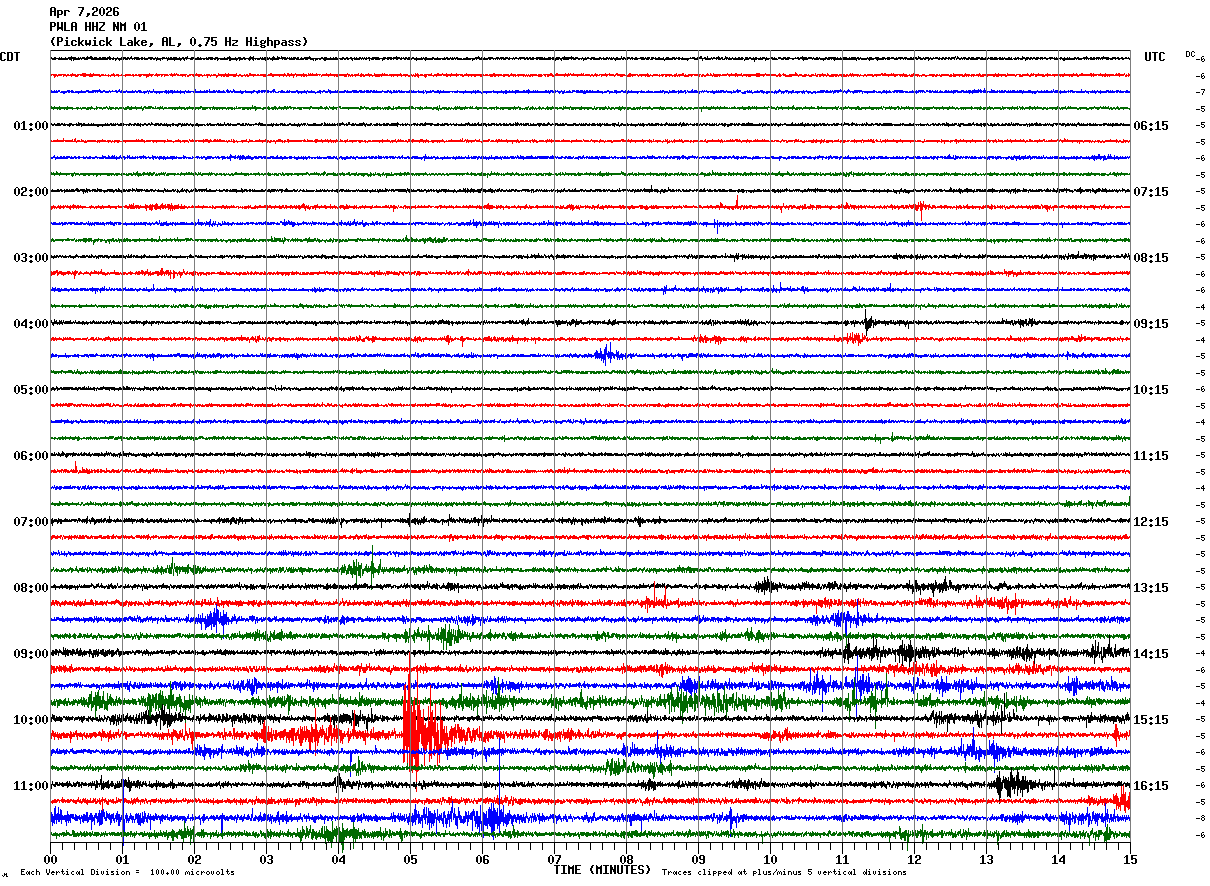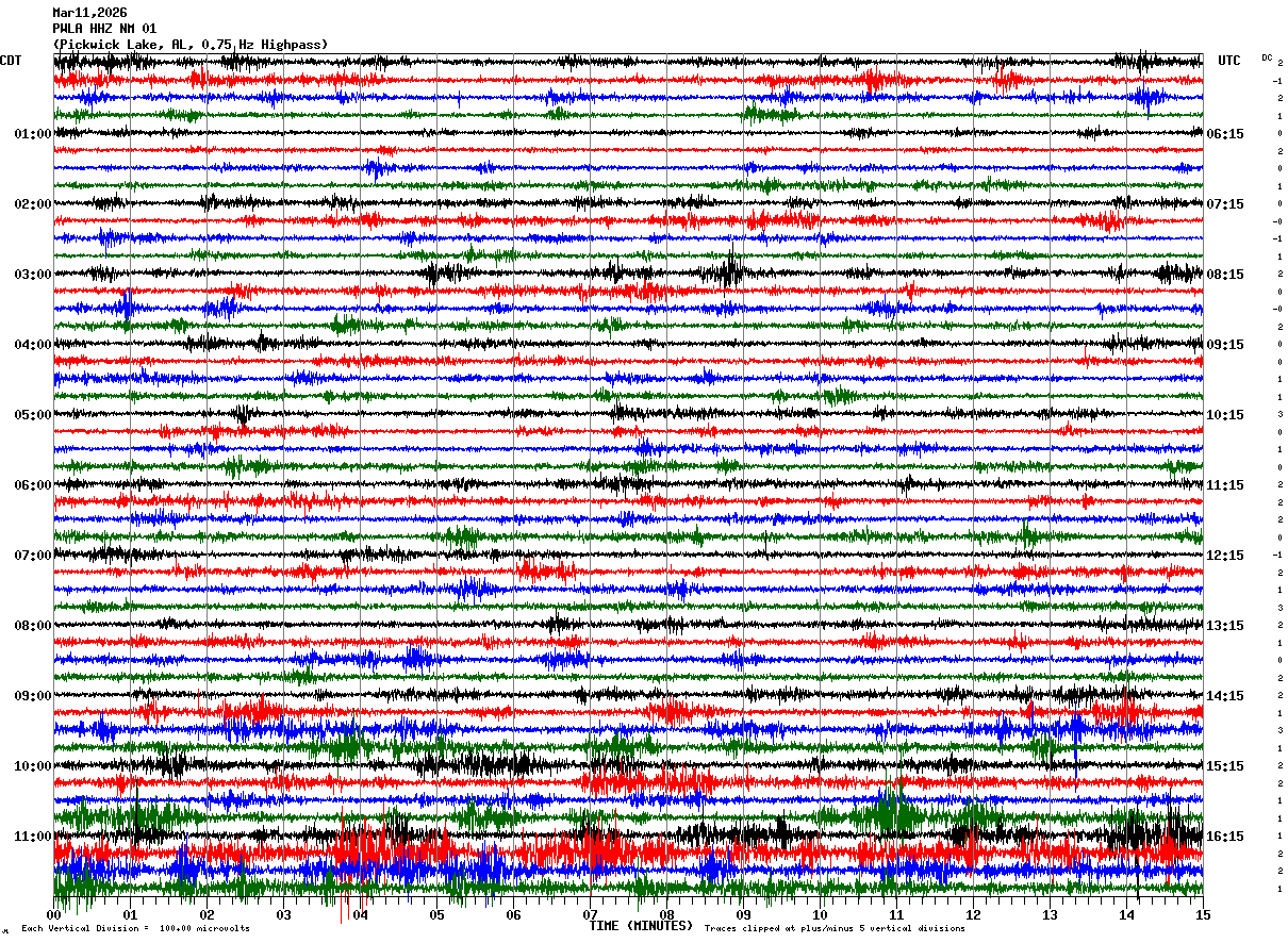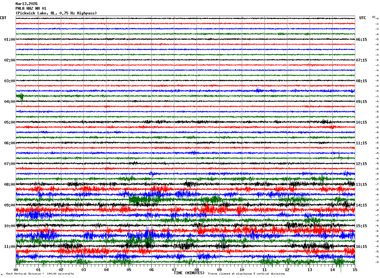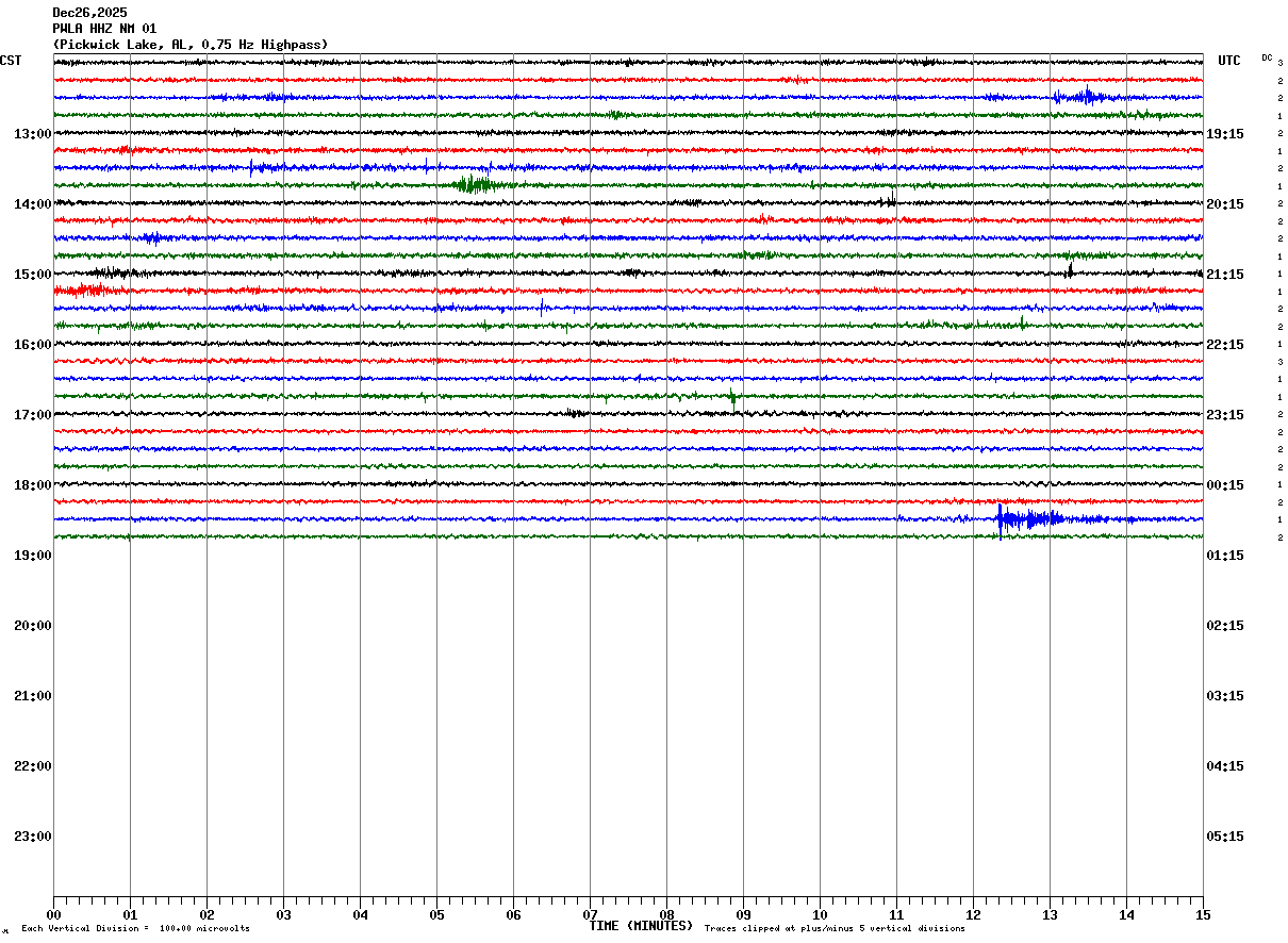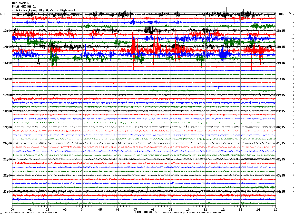 PWLA HHZ NM 01 : Pickwick Lake, AL, 0.75 Hz Highpass