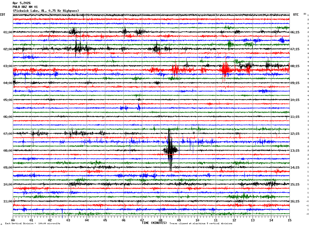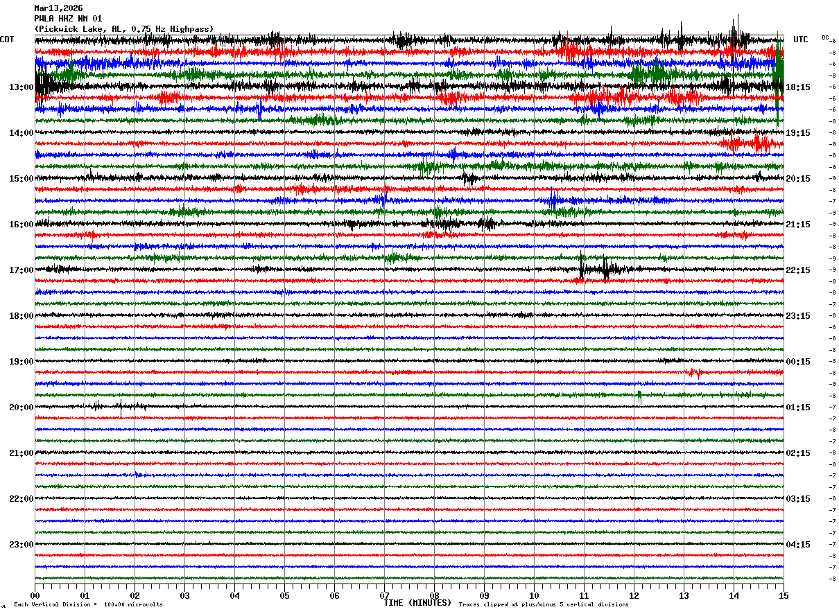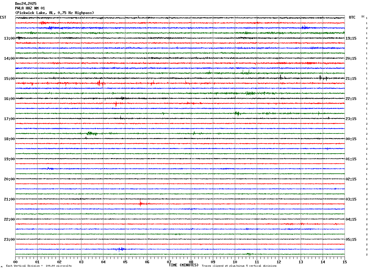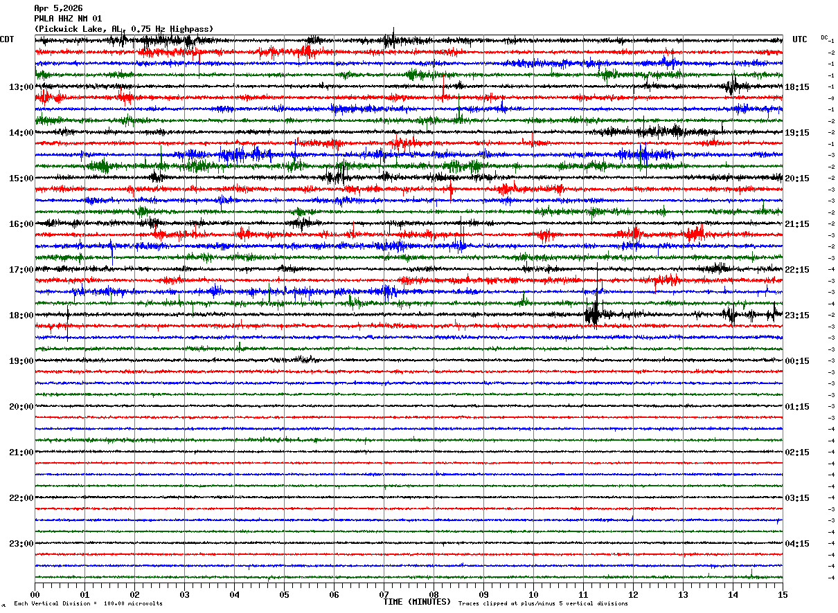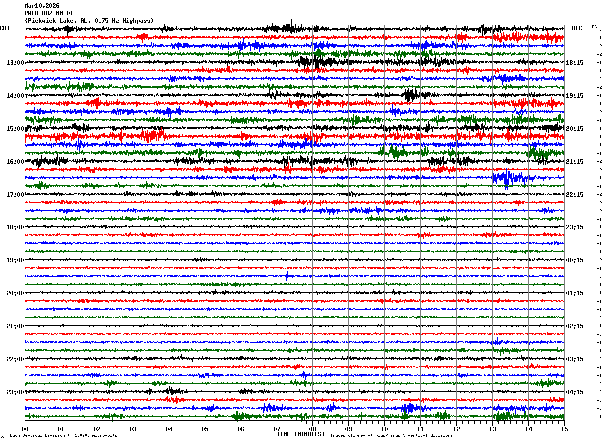PWLA HHZ NM 01 : Pickwick Lake, AL, 0.75 Hz Highpass