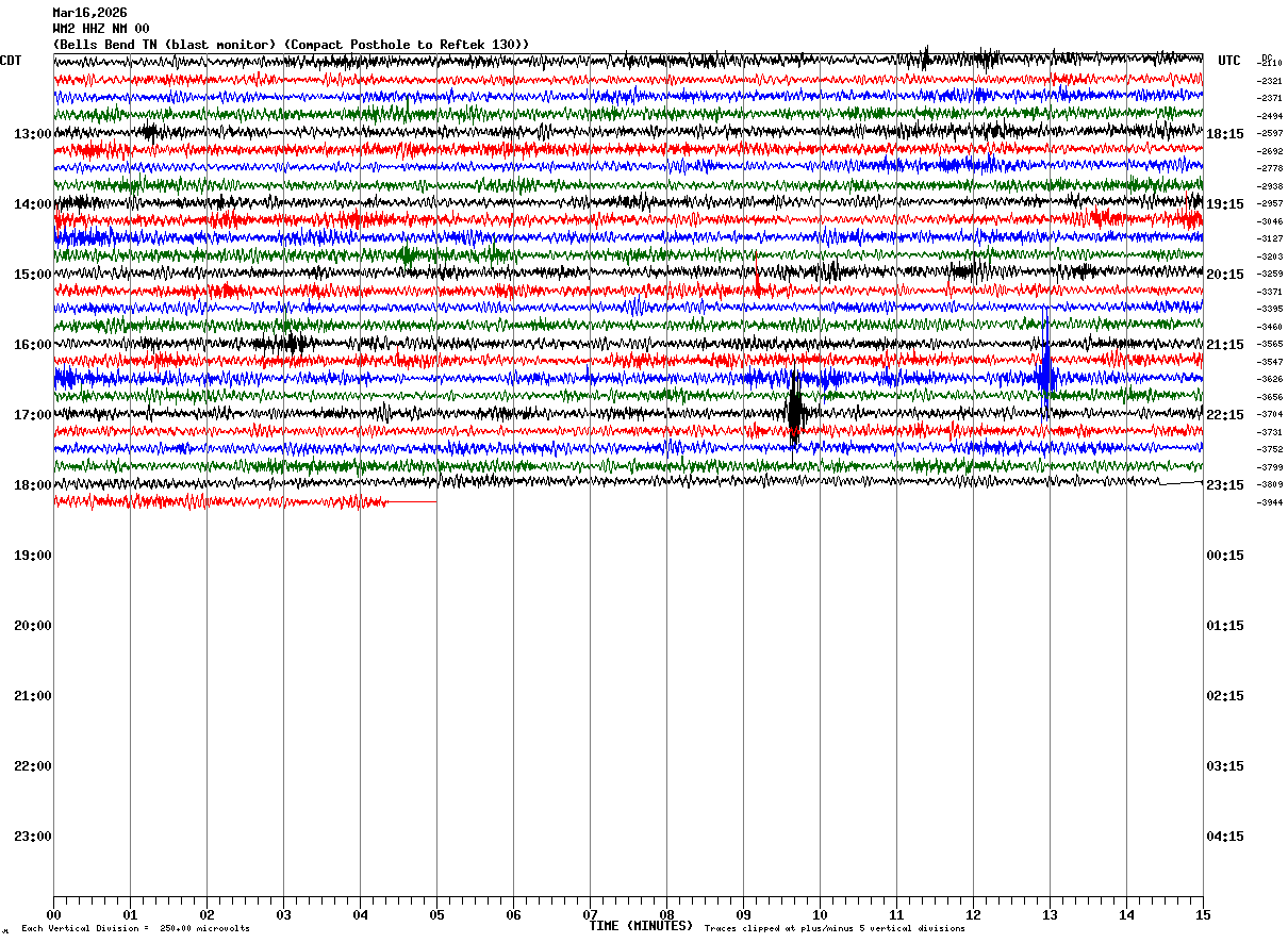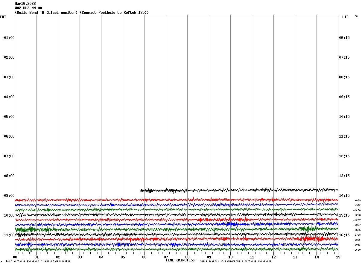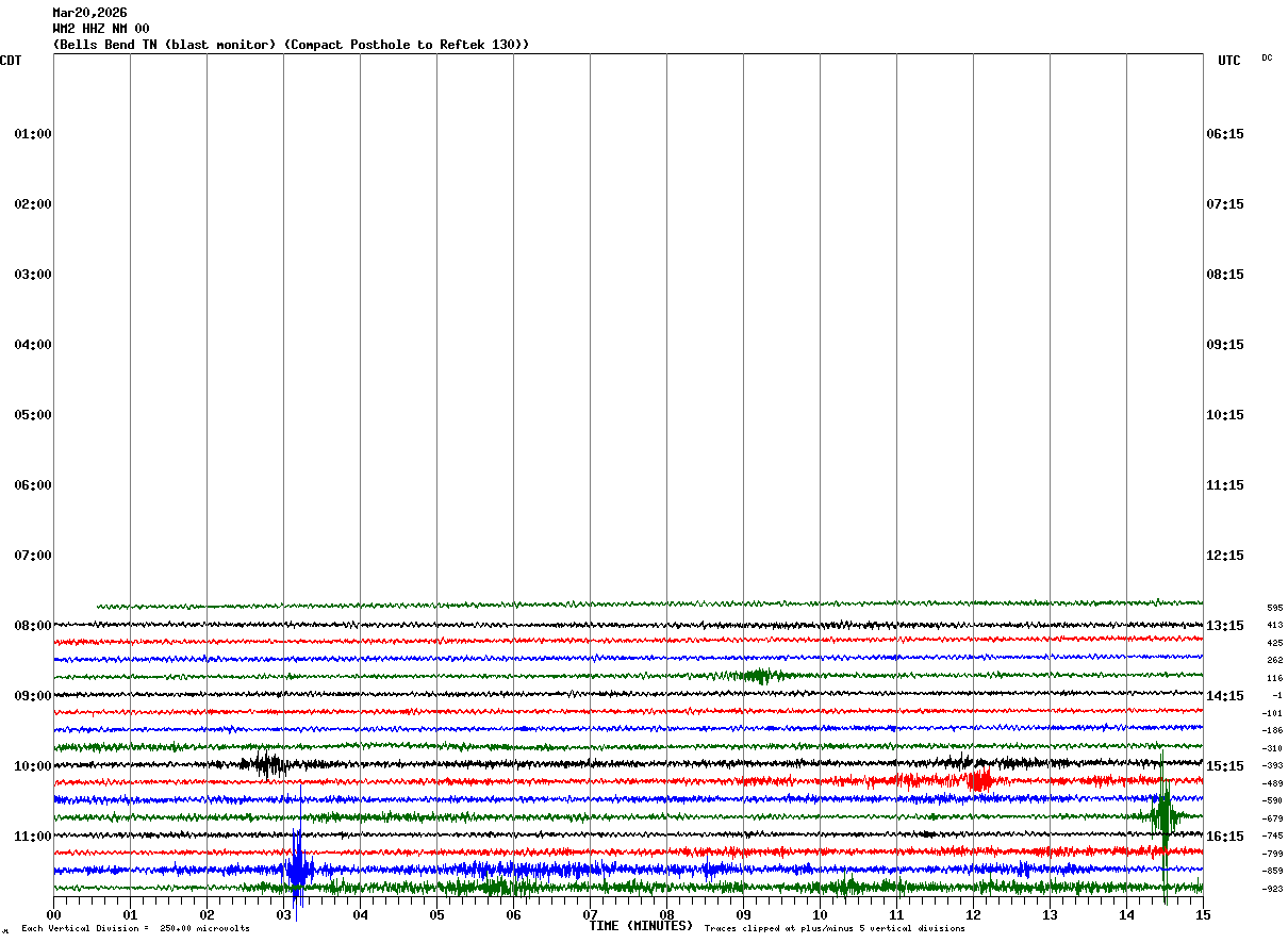 WM2 HHZ NM 00 : Bells Bend TN (blast monitor) (Compact Posthole to Reftek 130)
