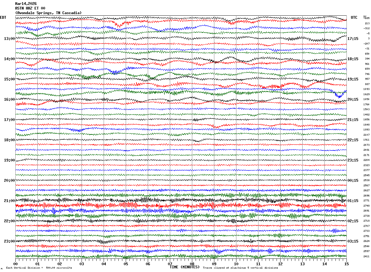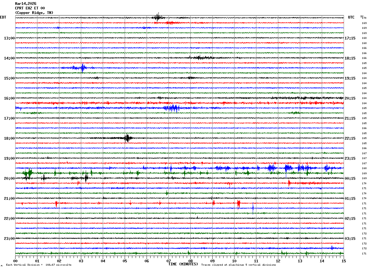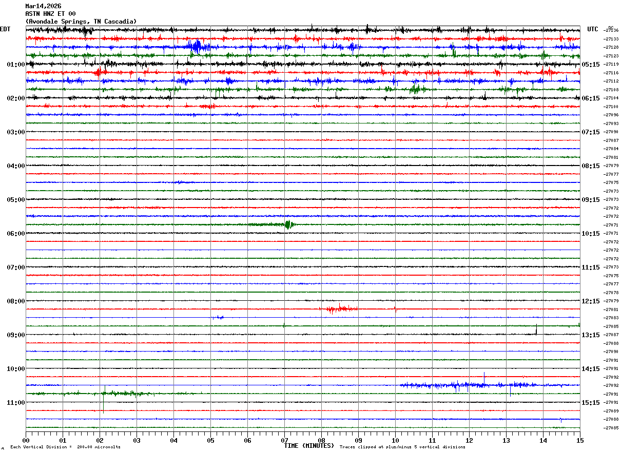 Recent Helicorder Displays From the Morristown, TN Node