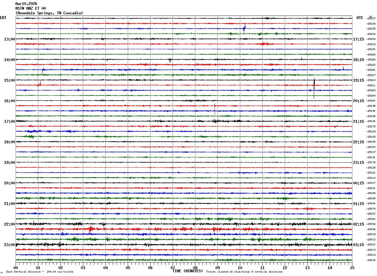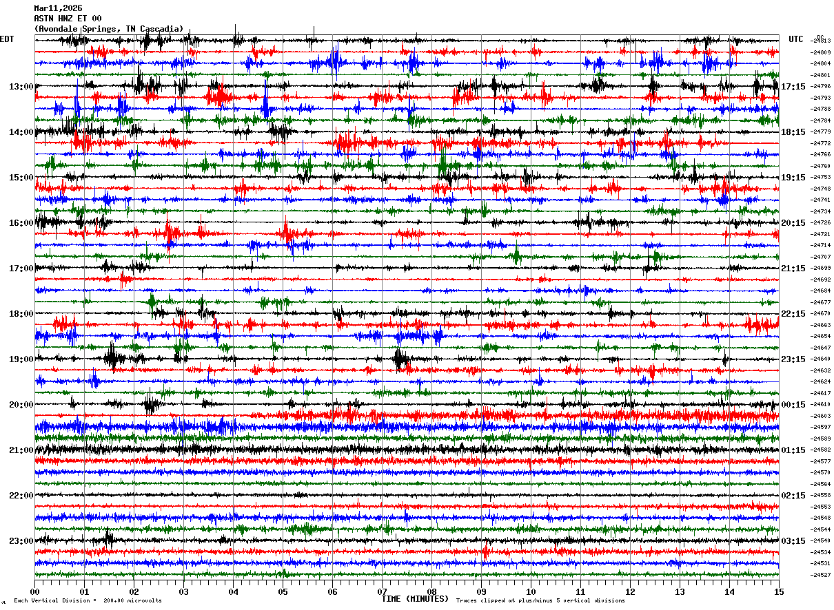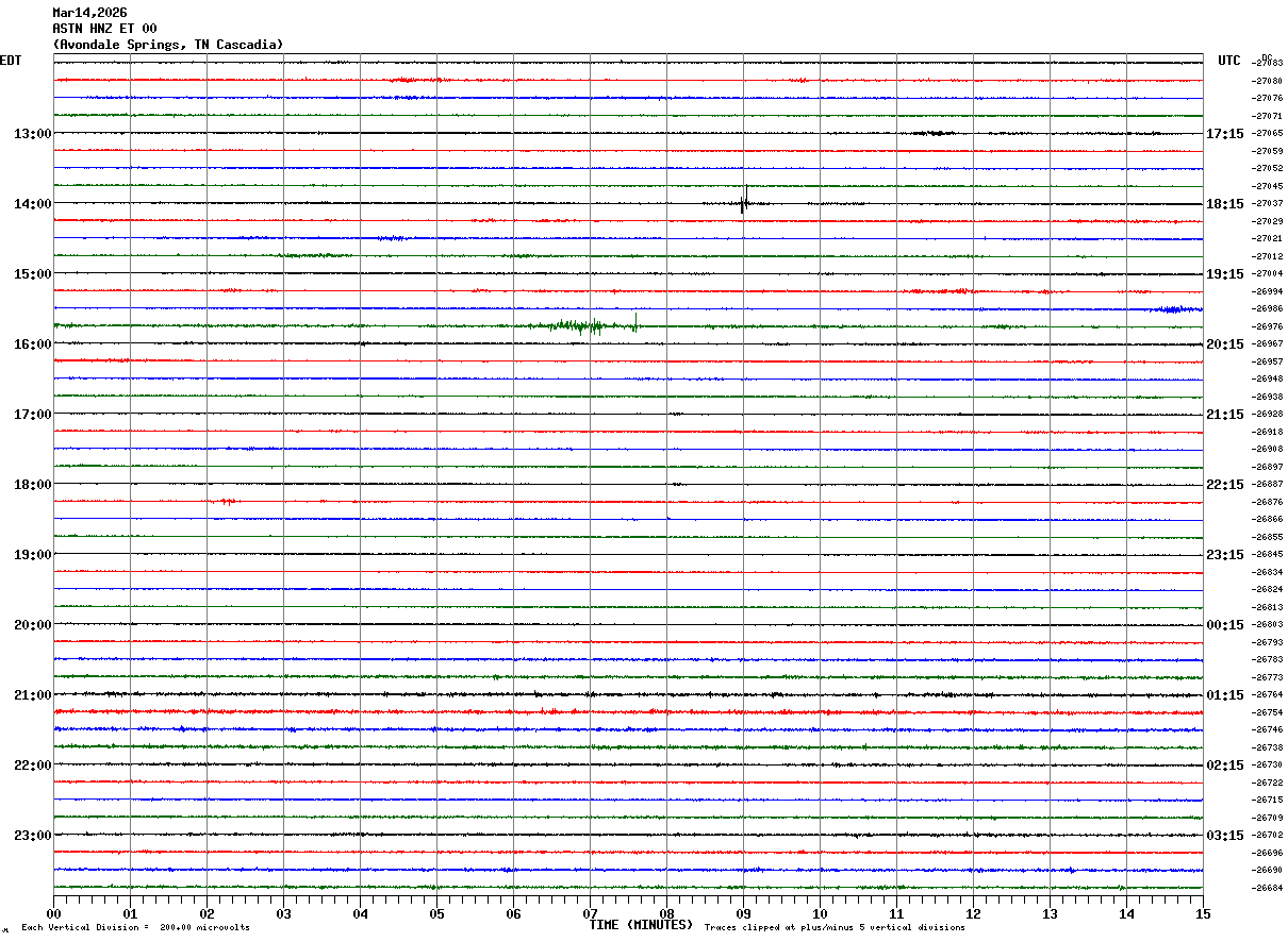 Recent Helicorder Displays From the Morristown, TN Node